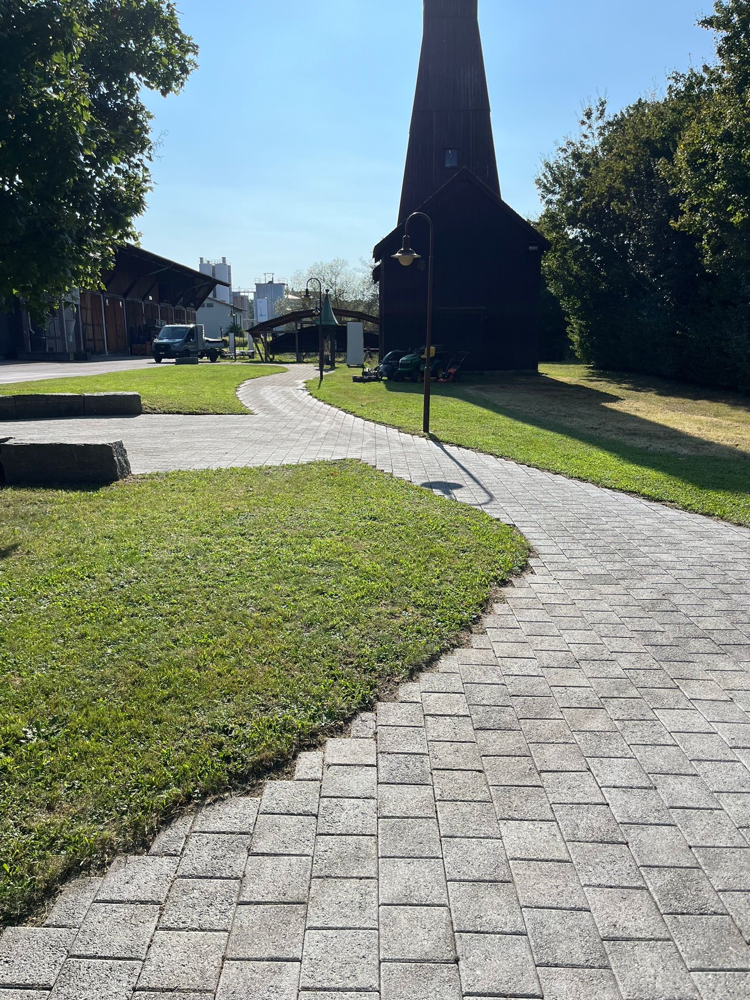 Mit dem Rapid Mondo und dem Anbaugerät der Wildkrautbürste konnte der Weg sauber von Unkraut gereinigt werden.